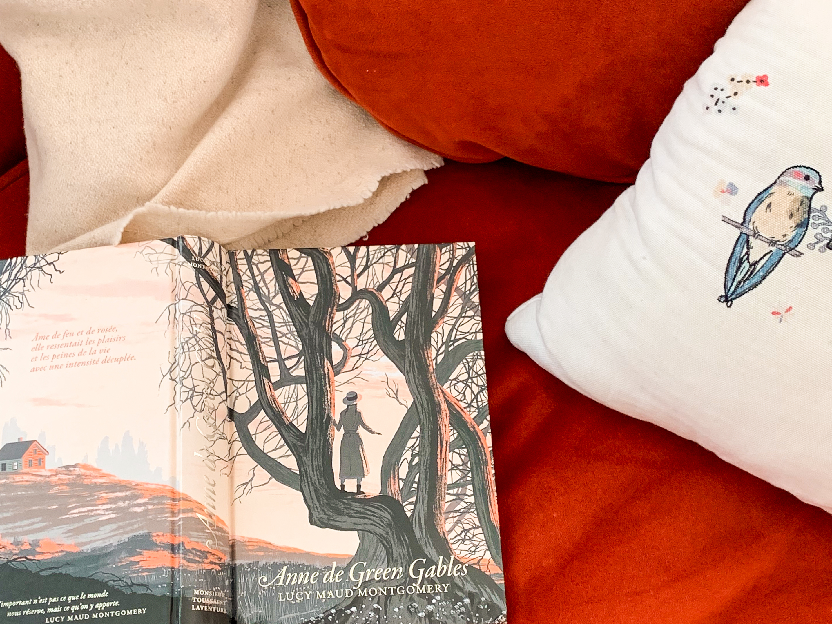 C’est une règle d’or parmi les bibliophiles, de ne s’acheter aucun livre 4 mois avant les fêtes. Et de l’importance des règles d’or puisque les 3 premiers tomes m’attendaient bien sagement sous le sapin. Oh mon coeur en joie de pouvoir lire ces mots après avoir vu et revu les images. J’ai adoré. Actuellement le deuxième tome m’attend sagement, et j’ai hâte de découvrir la suite des aventures d’Anne puisque la série s’arrête à la fin du premier tome. J’en ai longtemps été attristée, comme lorsqu’un ami part loin, mais plus aujourd’hui. En lisant le premier tome j’ai pu comprendre en quoi les amoureux de l’oeuvre de L.M Montgomery avaient été déçus de la série. Quoique très belle et bien réalisée, elle a apportée beaucoup de modifications à ce premier tome, qui n’étaient pas nécessaires. L’oeuvre en elle-même est si riche de détails et anecdotes qu’elle avait toute la matière nécessaire à une série. Ce choix peut s’expliquer par l’évolution d’Anne qui passe de 11 à 16 ans en un seul tome, une grosse transformation physique donc…