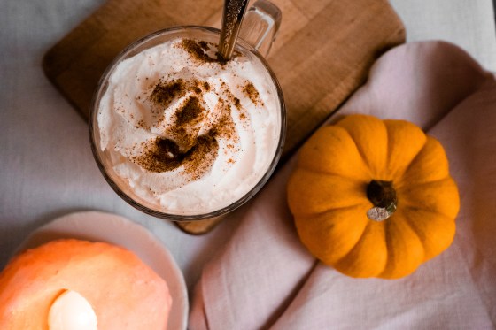 Le Pumpkin Spice Latte, un caffé latté accompagné de sirop de potiron et d’un mélange d’épices, une boisson chaude, réconfortante, et tellement de saison!